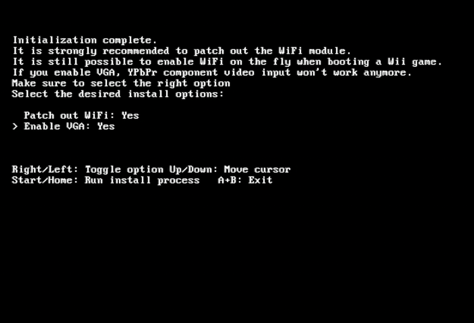 Before proceeding, your Wii must be "softmodded" with the Homebrew Channel. The definitive guide for this can be found at Wii Hacks Guide. After the Homebrew Channel is installed, proceed with the instructions for Installing RVLoader.
